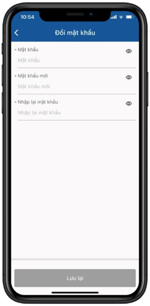 - Nhập mật khẩu hiện tại, mật khẩu mới và nhập lại mật khẩu mới.
