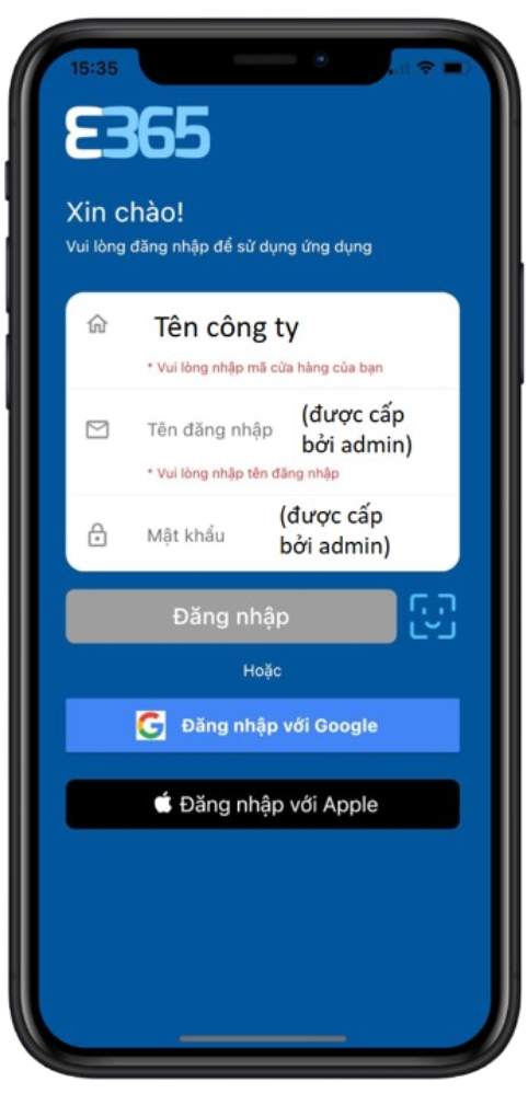- Đăng nhập: Nhấn nút này để vào ứng dụng.