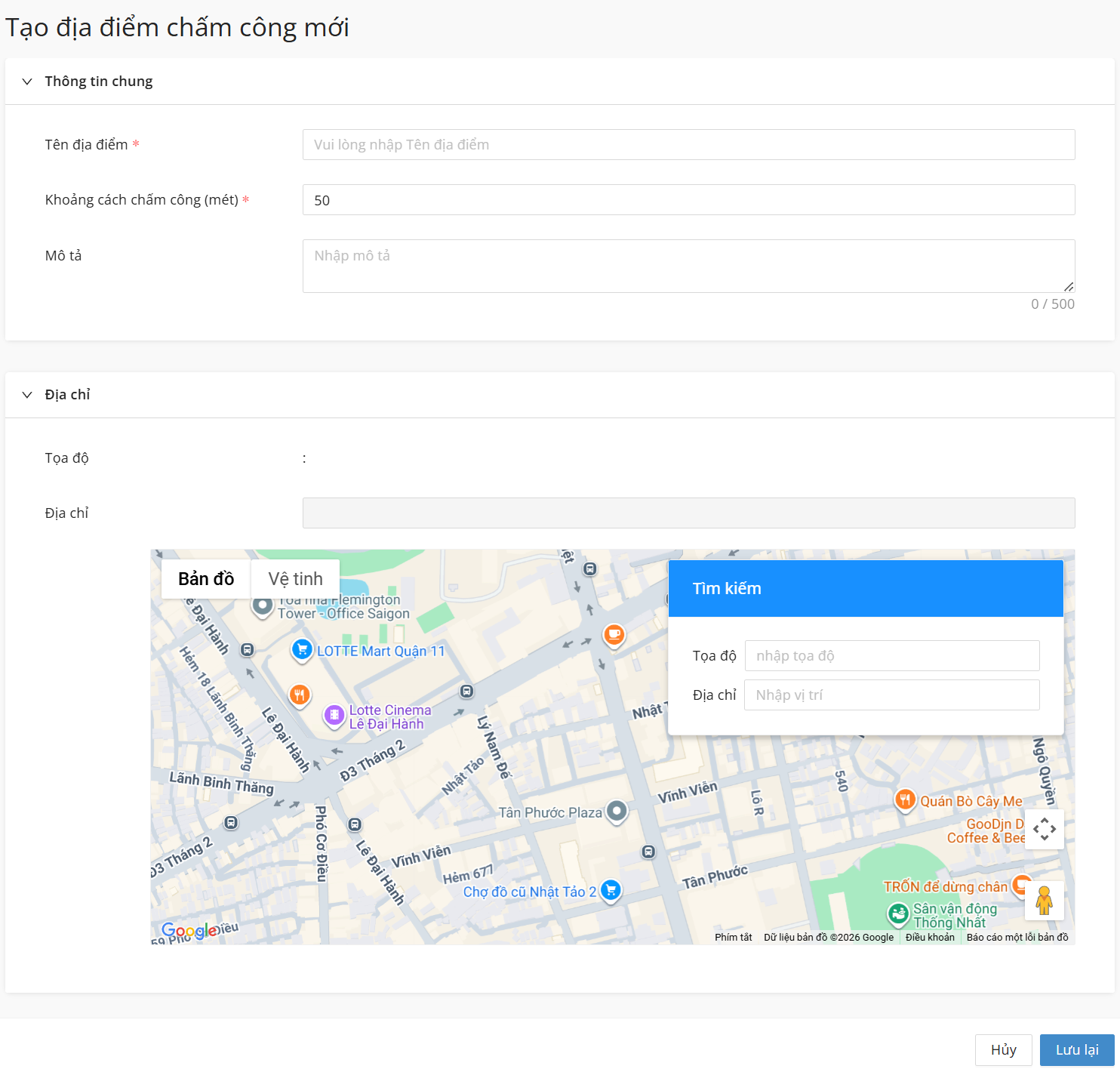 - Tạo địa điểm chấm công