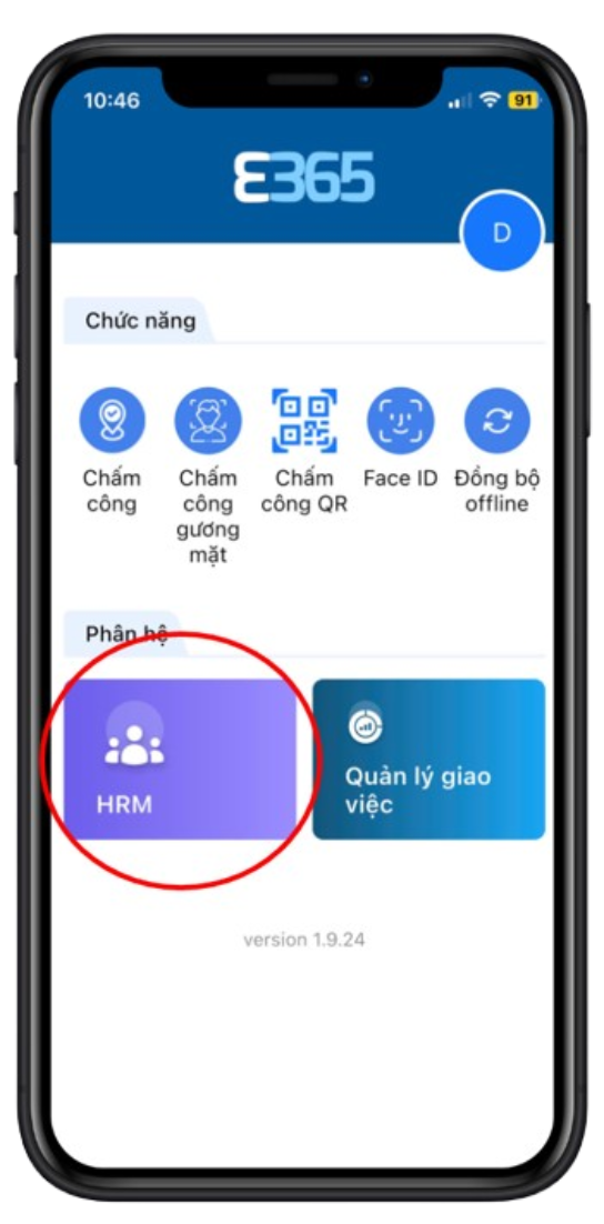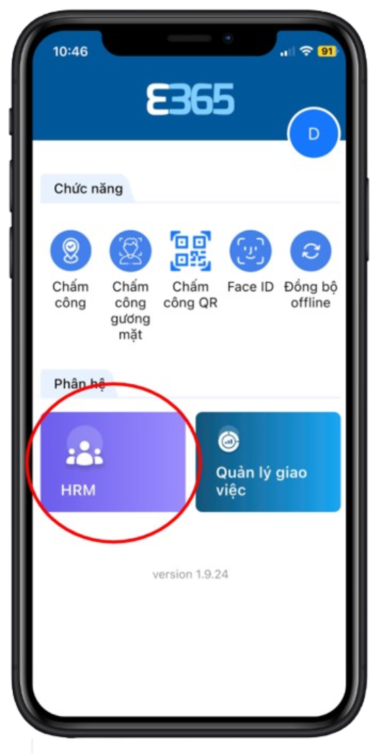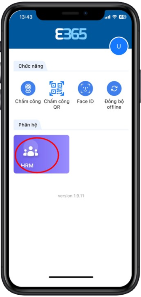 - Vào phân hệ: Tại màn hình chính, chọn mục HRM.