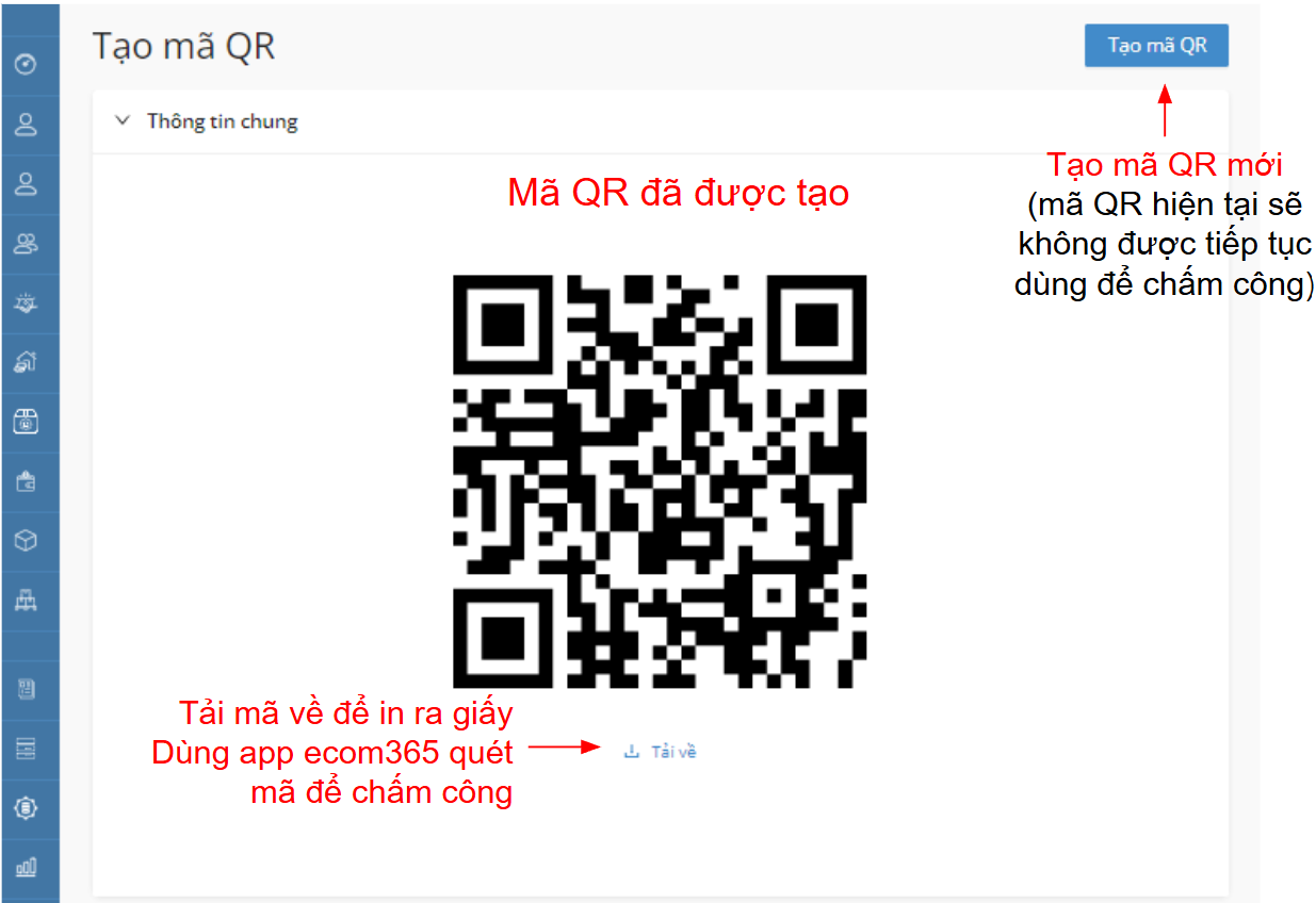 Hướng dẫn tạo mã QR chấm công theo các bước như hình