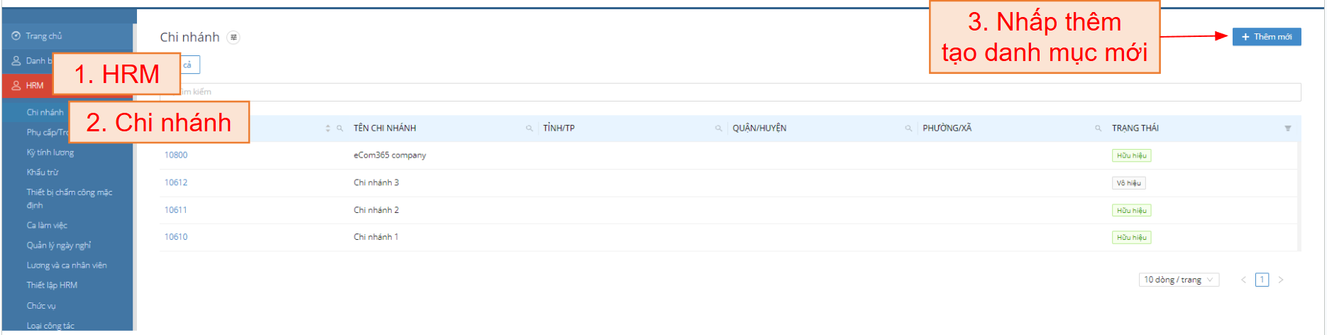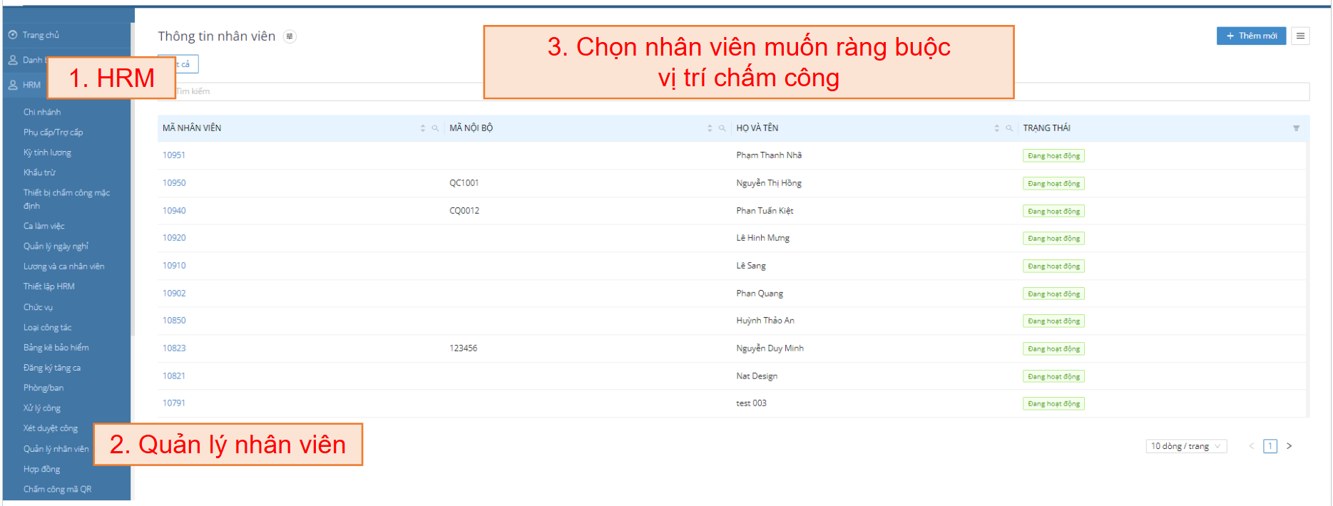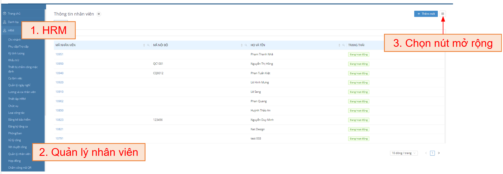 - Vào phân hệ: Từ màn hình chính, chọn mục HRM.