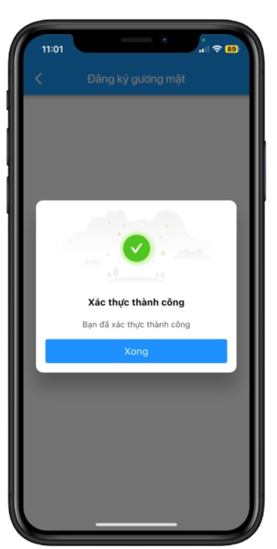 - Hoàn tất: Khi hệ thống báo "Xác thực thành công", nhấn nút Xong.
